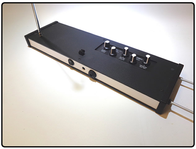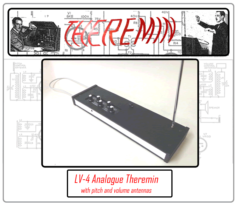 Believed to be the earliest electronic musical instrument developed in the 1920s, the Theremin - named after its inventor Leon Theremin, is unique in that it is played without being touched, instead it's by the players' proximity to the pitch and volume antennas. The Lostvolts.com LV-4 theremin features a full width case and it's electronics are 100% analogue. It has a 6 octave range. Along with the usual controls for Pitch Antenna Tuning, Volume Antenna Response and Master Volume, the LV-4 has two extra controls - Waveshape and Filter, which subtly change the timbre of the tone from pure to woodwind through to string-like. Compact and easy to transport, the LV-4 theremin is supplied with a telescopic pitch antenna and a loop volume antenna along with a quality power adaptor (9 to 12 volt dc, 2.1mm centre positive). There's also a vintage germanium diode in the detector stage. There is no internal